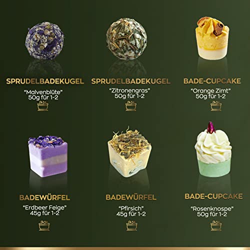🎁LUXURIÖSES FRAUEN GESCHENKSET FÜR WUNDERSCHÖNE ENTSPANNUNGSMOMENTE – Die veganen Bio Badebomben bieten ein handgefertigtes Wellness Set für Frauen mit echten Blütenextrakten. Das Geschenkset für Frauen beinhaltet die Düfte: Malvenblüte, Zitronengras, Orange-Zimt, Rosenknospe, Erdbeer-Feige & Aprikose. Sei entspannt beim Gedanken “Beste Freundin Geschenke”, “Geschenk Freundin Geburtstag” oder “Geschenk Frau”. Die Badekugeln sind ideale kleine Geschenke und einfach das beste Geschenk für Frauen.