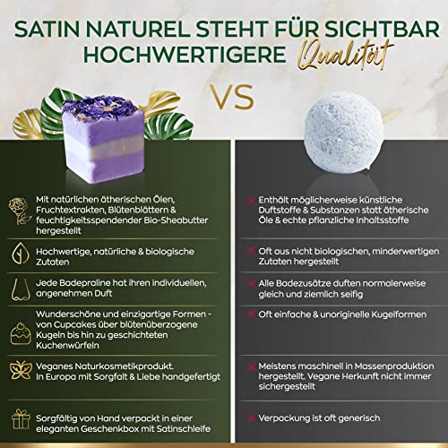 🎁AUßERGEWÖHNLICHE QUALITÄT / BIO & NATÜRLICH / KEINE KÜNSTLICHEN FARBSTOFFE – Satin Naturel vereint natürliche Wirkstoffe, herausragende Produktqualität und ein elegantes Design miteinander. Entscheidend für unsere revitalisierende Skincare ist die natürliche Wirksamkeit. Wenn es um Geschenke für Frauen, Geschenk Freundin, Geschenk beste Freundin, Geschenkset Frauen oder ein passendes Mama Geschenk geht, sind die Badekugeln eines der besten Frauen Geschenke zum Geburtstag oder zu Christmas.