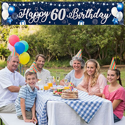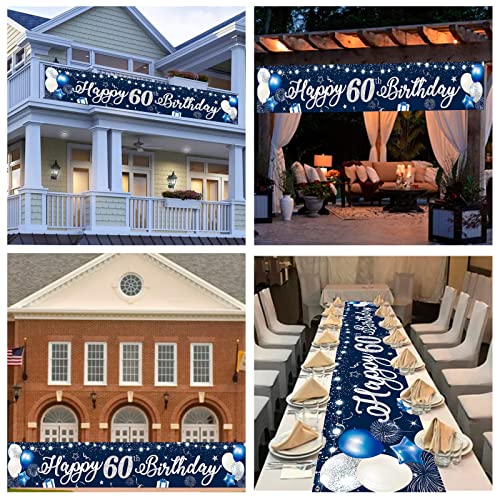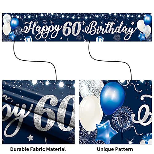 Details: 60. Geburtstag Banner, Blau Silber Happy 60th Birthday Banner, Alles Gute zum Geburtstag Banner, 210x40cm Extra Lange…