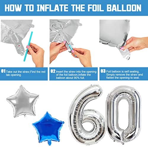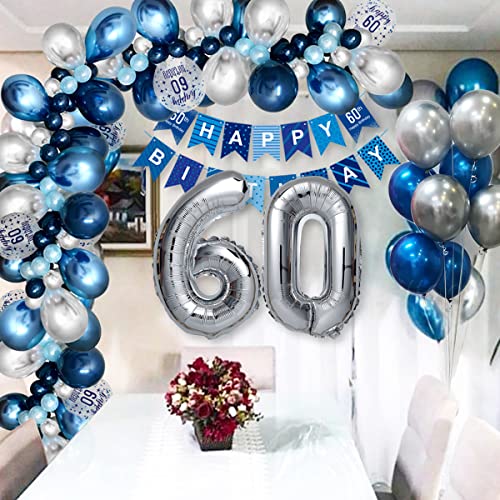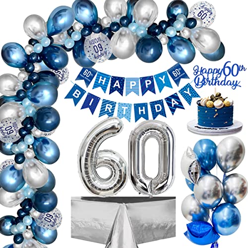 60. Geburtstag Deko, Deko 60.Geburtstag Männer mit Luftballons 60.Geburtstag Blau Silber, 60. Happy Birthday Banner…