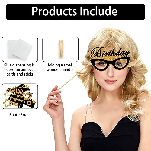 🎂【Modestil foto accessoires】: Dieses Set von 60 Jahre alt Geburtstagsdekorationen enthältenthält 31 Verschiedene stilvolle und lustige Muster-Requisiten wie Krawatte, Herzen, Weinglas, Schnurrbärte, Kuchen, Hüte, Kussmünder, Lippenstift, Gläser usw., ausreichend und reichhaltig Stile für Ihre Bedürfnisse.