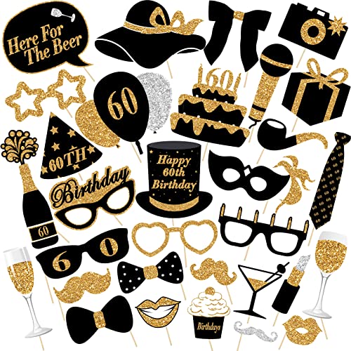 Details: 60.Geburtstag Deko,31Stück 60. Geburtstag Fotobox Accessoires,60 Geburtstag Foto Requisiten,Party Deko 60. Geburtstag,60…