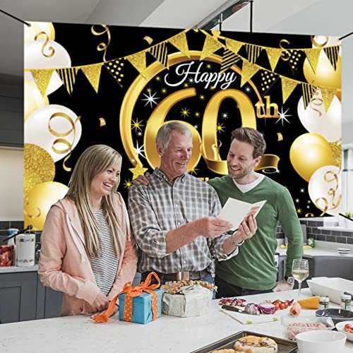🎉 60 geburtstag elegantes banner, schwarz goldene design eignet sich sehr gut für männer und frauen, ieses geburtstagsbanner ist eine großartige dekoration für die themenparty zum 60 geburtstag und kann die fröhliche atmosphäre der geburtstagsfeier verbessern.