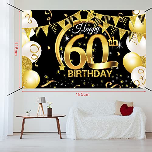 🎉 Schwarz goldene 60 geburtstagsbanner ist 185 x 115 cm, groß genug, um die 60 geburtstagsfeier, die 60. jubiläumsfeier, den kuchentischhintergrund oder als zeichen plakat fotokulisse zu dekorieren, es ist auch schön, drinnen oder draußen zu hängen. um ihre geburtstagsfeier beeindruckend und unvergesslich zu machen.