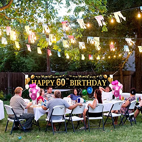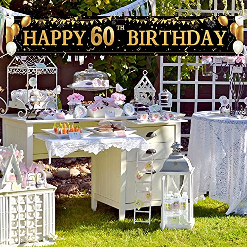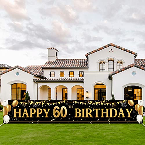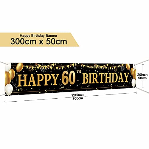 【Große Größe】Paket enthält ein Stück große Schwarz und Gold alles Gute zum Geburtstag Banner, misst 9,8 x 1,8 Fuß/3mx50cm, groß genug für perfekte Geburtstag Party-Dekoration und für Fotografie Kulissen auf Ihrer Party.