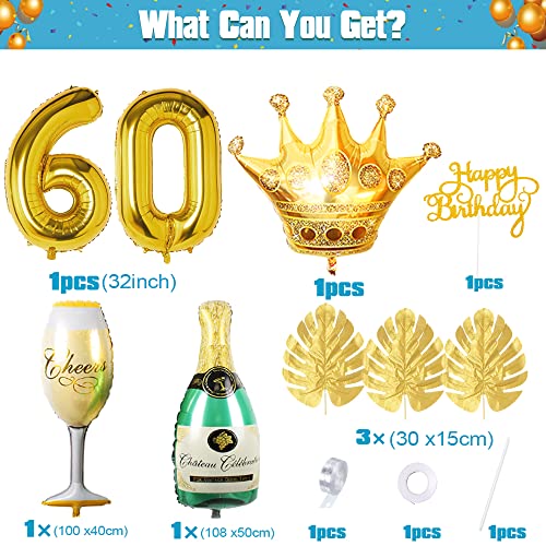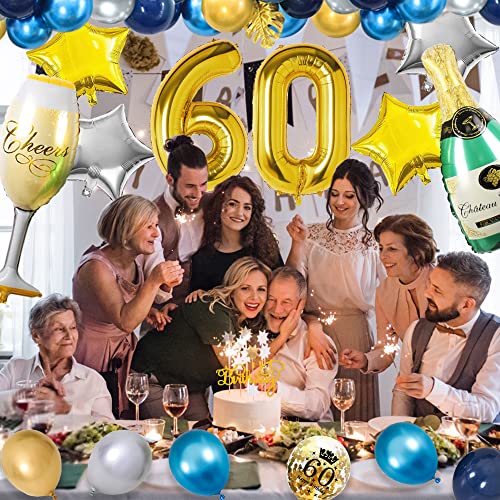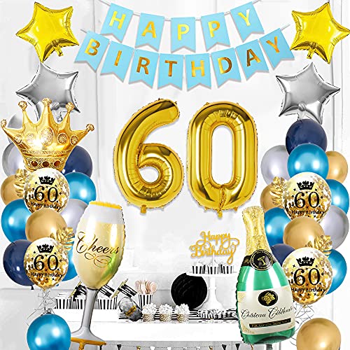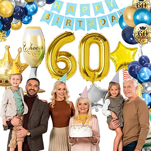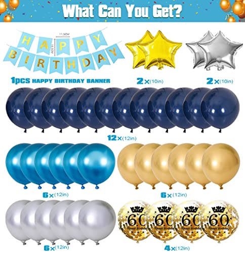 🎁 DEKO 60 GEBURTSTAG MANN KITS: SWPEED Blau Gold 60. geburtstag deko enthält: 1 set happy birthday banner, 32 zoll digital „60“ folienballon, navy blue luftballons x12, blue luftballons x6, silber luftballons x6, gold luftballons x6, gold konfetti luftballons x4, palmblätter x3, gold sternfolie luftballons x2, silberstern folienballons x2, champagnerglasballon x1, flaschenballon x1, goldener Kronenballon x1, cake topper x1, ballonstreifen x1.