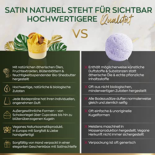 🎁VERWANDELT DAS BAD IN EINE OASE TRAUMHAFTEN DUFTS – Sobald sich die edle Geschenkbox öffnet, machen wohlduftende ätherische Öle Lust auf ein Wannenbad. Wertvolle Inhaltsstoffe lassen das Badeerlebnis mit den Badepralinen von Satin Naturel zu einem ganz besonderen Moment der Ruhe werden. Shea- und Kakaobutter pflegen die Haut zart und geschmeidig. Eine Bodylotion ist nach dem Baden überflüssig. Verschenke einzigartige Spa-Momente mit einem der hochwertigsten Weihnachtsgeschenke für Frauen.