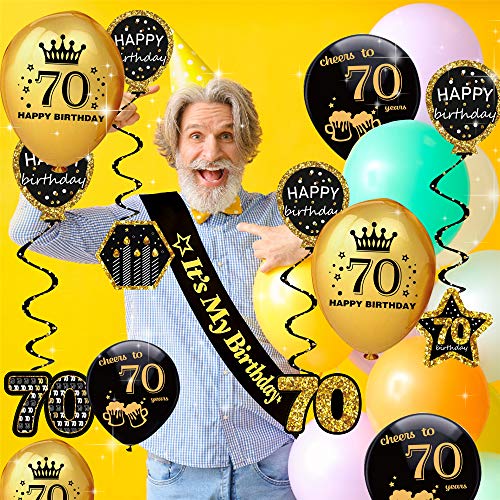 🎈 20 DRUCK BALLONS + FOLIEN BALLONS: 10 Stück Goldballons zum 70. Geburtstag, 10 Stück Prost auf 70 Jahre schwarze Konfetti Luftballons, 40 Zoll Goldfolienballons Nummer 70 für schillernde Luftballons, die begeistern!