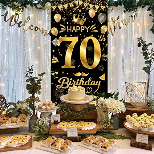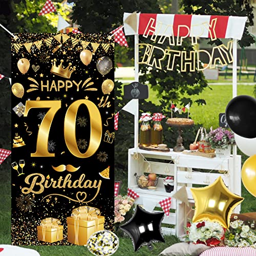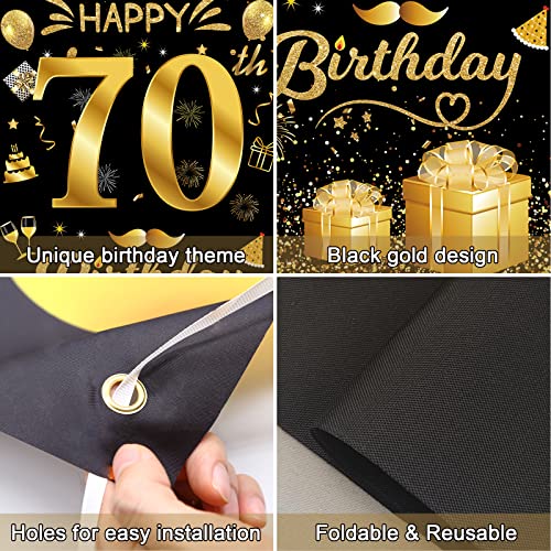 Ideale Geburtstag Dekoration: Lebendige und funkelnde Dekorationen zum 70. Geburtstag in Schwarz und Gold ergänzen sich gegenseitig und bringen eine lustige Atmosphäre auf eine Geburtstagsfeier. Es kann auch als Hintergrund verwendet werden, um andere Geburtstagsfeierartikel zu mischen. Perfekt für Geburtstag deco im Innen- und Außenbereich.