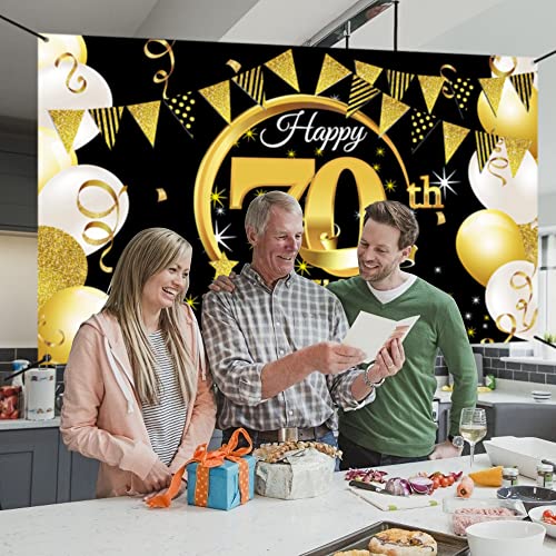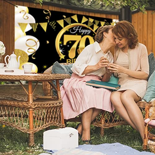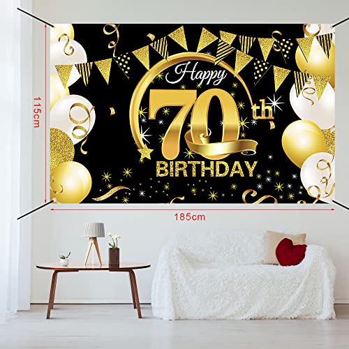 🎉 70 geburtstag elegantes banner, schwarz goldene design eignet sich sehr gut für männer und frauen, ieses geburtstagsbanner ist eine großartige dekoration für die themenparty zum 70 geburtstag und kann die fröhliche atmosphäre der geburtstagsfeier verbessern.