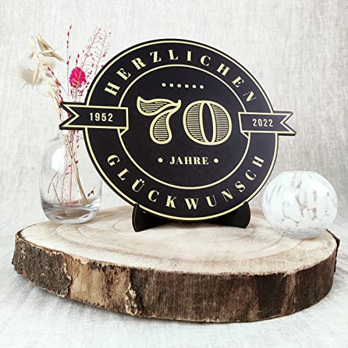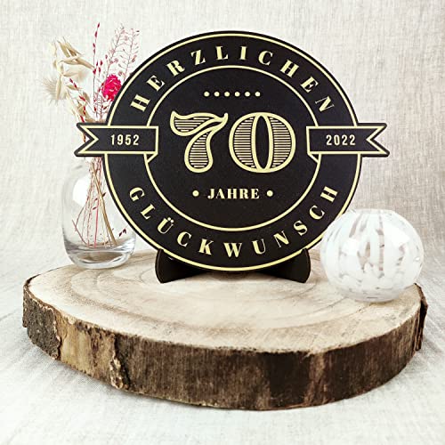 PERSÖNLICHES GESCHENK: 1952 – 2022 – 70 Jahre zum Feiern und erinnern. Holzscheibe mit eigenem Wunschtext als tolle Geschenkidee. Diese personalisierbare Jahreszahl ist die persönliche Dekoration für den Mann, Frau, Freund sowie Familie, Freundinnen & Freunde, Männer & Frauen, Oma & Opa – persönlich und von Herzen