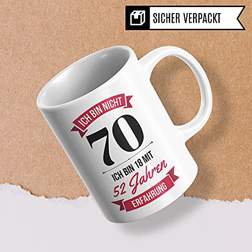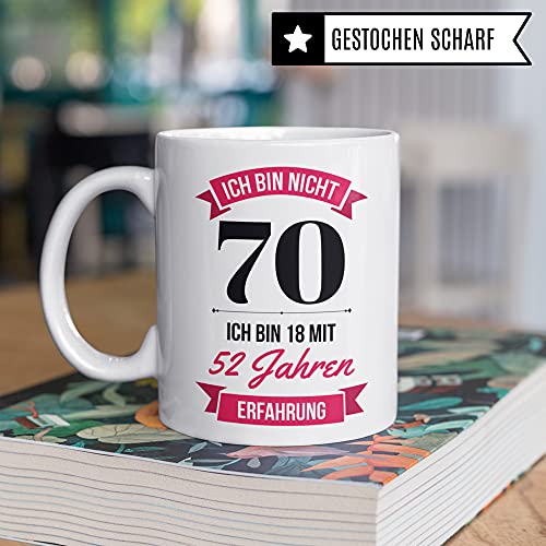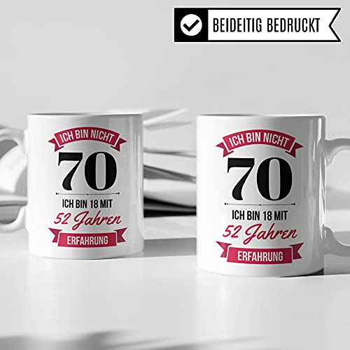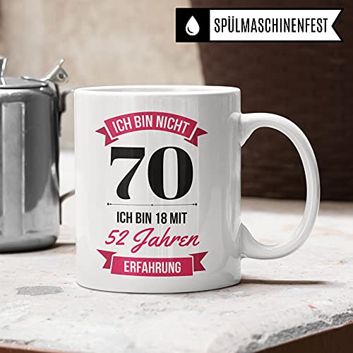 🎉 ICH BIN NICHT 70 SONDERN 18 MIT 52 JAHREN ERFAHRUNG: Witziges 70. Geburtstag Frauen Geschenk. Coole Deko für das Geburtstagskind gesucht? Diese lustige Kaffeetasse ist perfekt!
