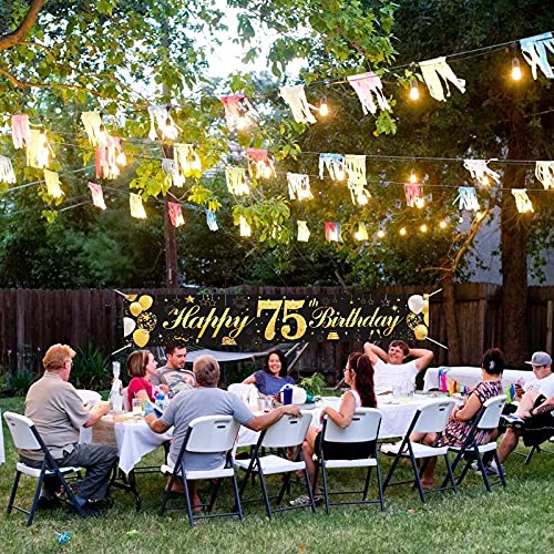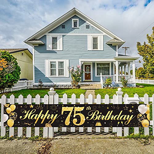【Große Größe】Paket enthält ein Stück große Schwarz und Gold alles Gute zum Geburtstag Banner, misst 185cmx40cm, groß genug für perfekte Geburtstag Party-Dekoration und für Fotografie Kulissen auf Ihrer Party.