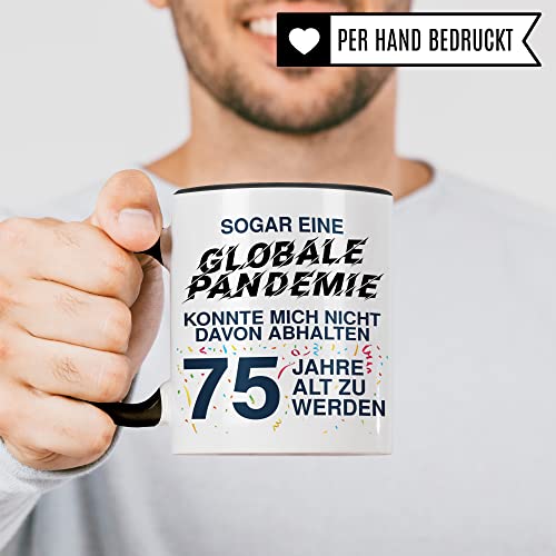 🎉 GESCHENKIDEE für den 75. Geburtstag. Schönes Andenken an den runden Ehrentag – trotz der globalen Pandemie. Premium Kaffeetasse für jeden humorvollen 75-Jährigen Mann.