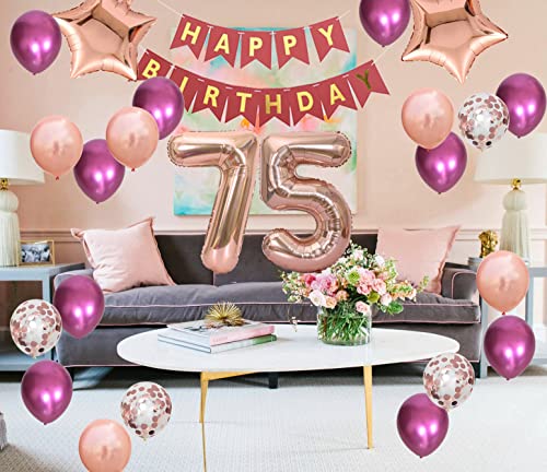 Details: 75. Geburtstags Dekorationen Windrot für Frauen, Happy Birthday Banner Nummer 75 Geburtstags Ballons Stern Folienballons…