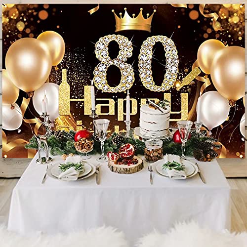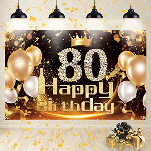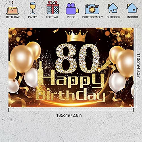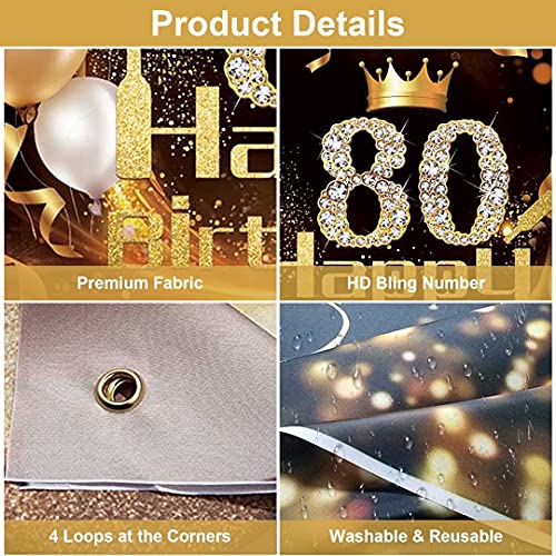 BLING NUMMER GEBURTSTAG HINTERGRUND: Das schwarz-goldene Geburtstagsbanner zeigt eine große Bling Zahl „80“ und viele Festival Elemente. Das HD Druckmuster und die schwarz-goldene Farbe passen gut zusammen und verleihen ihm eine besondere Struktur. Es wird eine perfekte Geburtstags dekoration sein, um eine fröhliche Atmosphäre für Ihr großes Ereignis zu schaffen und alle Ihre Freunde zu beeindrucken!