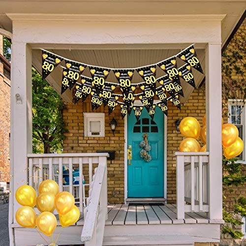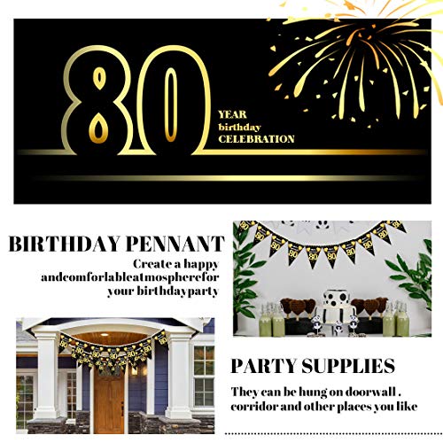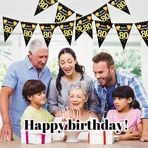 💘 Einfach zu dekorieren: Das schwarz gold Girlande Wimpel mit Kordel kann problemlos als Willkommensschild für die Dekoration von 80.Geburtstagsfeiern an beiden Seiten der Wand oder Tür aufgehängt werden.