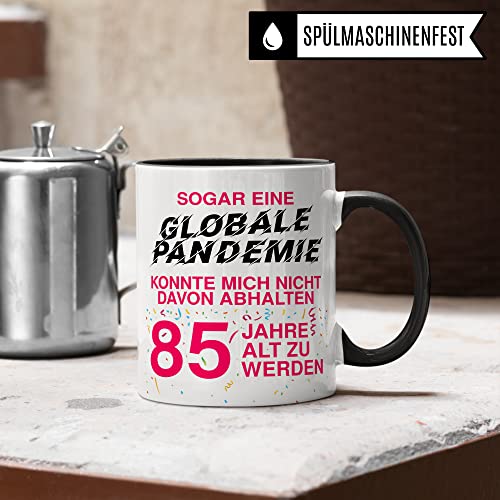 SOGAR EINE GLOBALE PANDEMIE KONNTE MICH NICHT DAVON ABHALTEN 85 JAHRE ALT ZU WERDEN! Lustige Tasse aus weißer Keramik mit coolem Spruch als Geschenk 85. Geburtstag Frau. Für alle Frauen, die im Chaos-Jahr 2022 85 Jahre alt werden. Garantiert spülmaschinenfester Aufdruck – mit hochwertiger Sublimationstechnik bedruckt und deshalb besonders robust. Alle unsere Tassen werden zu 100% in Deutschland, zu fairen Bedingungen und mit Liebe bedruckt. Das ideale Geschenk, egal ob die Tasse als Kakaobecher, Kaffeetasse oder Kaffeebecher genutzt wird.