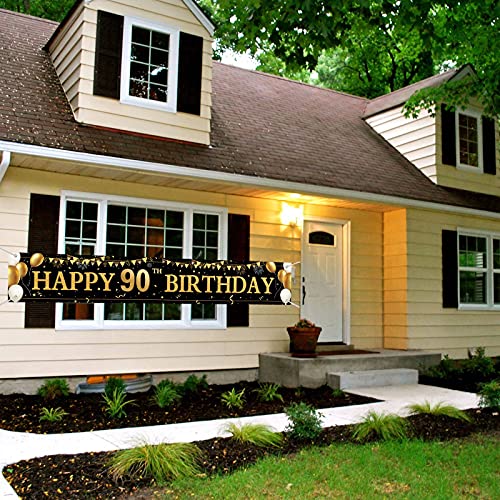 【Große Größe】Paket enthält ein Stück große Schwarz und Gold alles Gute zum Geburtstag Banner, misst 9,8 x 1,8 Fuß/3mx50cm, groß genug für perfekte Geburtstag Party-Dekoration und für Fotografie Kulissen auf Ihrer Party.