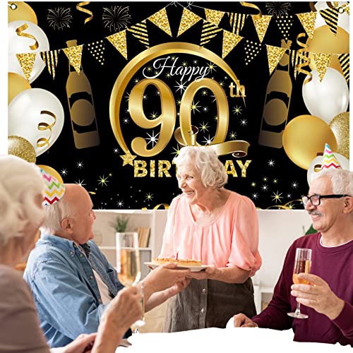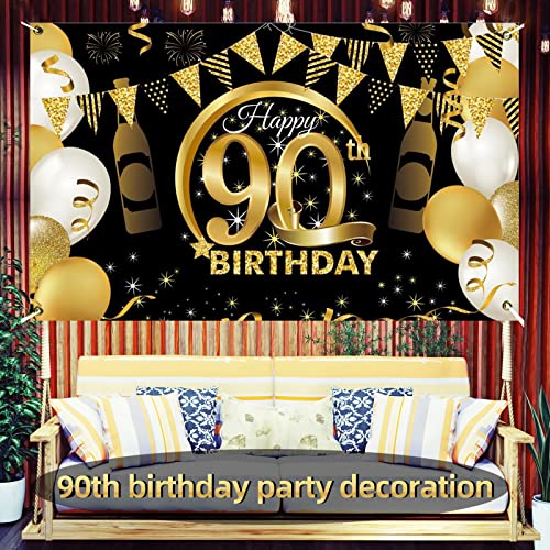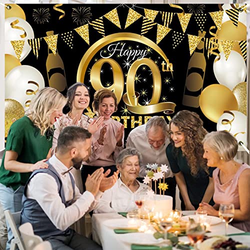 Details: 90. Geburtstag Party Dekoration,Banner 90 Geburtstag Roségold,Extra Große Fotografie Hintergrund Schild Poster für 90…