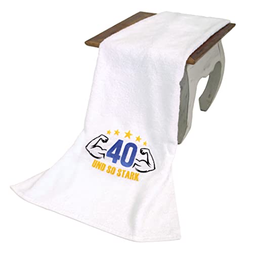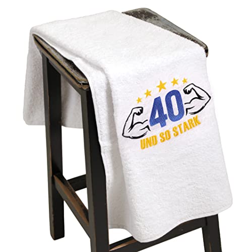 Eine Ihnen liebe Person hat Geburtstag und Sie wissen nicht, was Sie ihr schenken können? Wir haben eine gute Idee für Sie! Ein wunderbares, originelles und praktisches 40 Jahre Geburtstagsgeschenk: ein schönes Handtuch mit gestickten Muskel, 40 und so stark, Stickerei Größe 22 x 15 cm. Dieses originelle Geburtstagsgeschenk zum 40 jährigen Jubiläum wird die beschenkte Person sehr lange verwenden können. Es wird ihn jedes Mal an dich erinnern, wenn er es im Bad oder beim Sport benutzt, und vielleicht hängt er es sogar als Erinnerung an einen gut sichtbaren Platz in seinem Wohnzimmer oder Büro auf. Weißes Handtuch, 50 x 100 cm, 450 Gramm, aus hochwertiger 100%iger Baumwolle, ist mit 40 Grad Celsius waschbar und leicht zu pflegen, weich und saugfähig. Sei es ein Geburtstagsgeschenk, eine Geschenkidee für Namenstag, ein Jubiläum zum 40 Geburtstag, oder ein Treffen mit einem alten Freund – schöne und nützliche Aufmerksamkeit wird immer gut ankommen und Ihren Freund, Bruder, Papa, Sohn, Ehemann, Kollege, Nachbarn, begeistern.