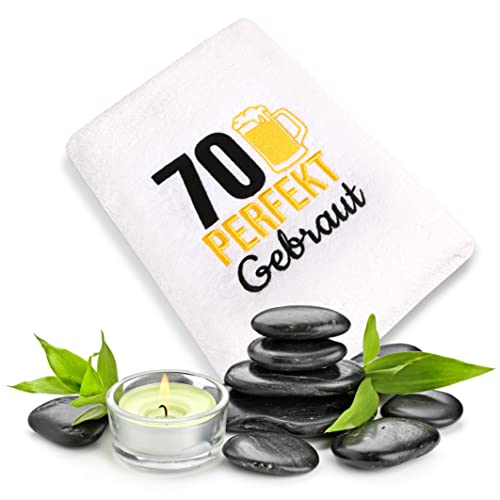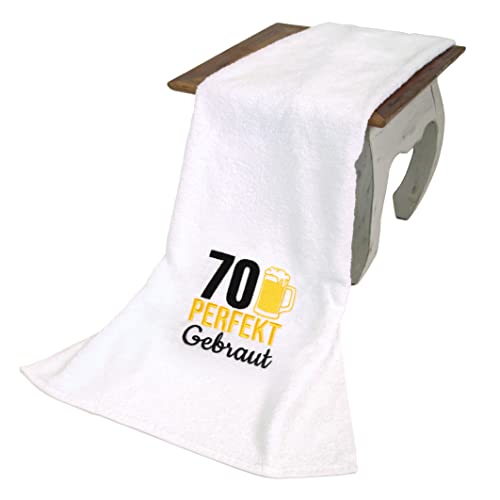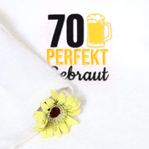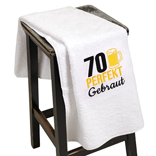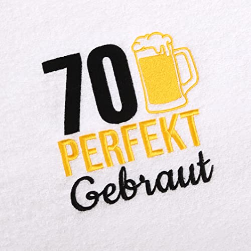 70. Geburtstag Geschenk; Schöne weiche Handtuch mit gesticktem Bierkrug, 70 perfekt Gebraut, Stickerei Größe 15 x 17 cm.