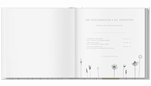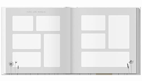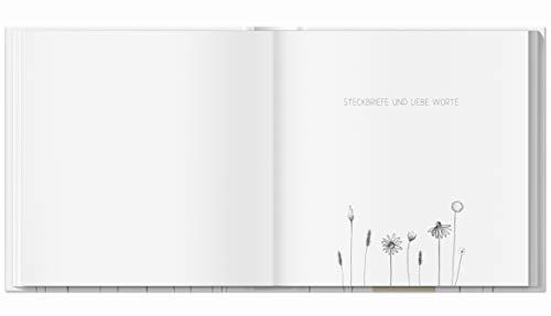 DAS BEKOMMST DU: Ein Abschiedsbuch in Weiß, Beige und Grau, stabiles Hardcover in 21×21 cm, 92 Seiten hochwertiges 120 g Recyclingpapier, 33 Steckbrief Seiten zum Eintragen, 33 blanko Seiten gegenüber, 8 Seiten für kurze Wünsche und 13 Seiten zur freien Gestaltung, klimaneutral produziert