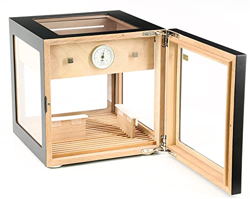 ADORINI Cube Deluxe Black, bis zu 100 Zigarren – Schwarz – Humidor mit Haar-Hygrometer und Befeuchtersystem