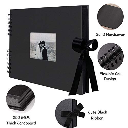 PRAKTISCH UND MULTIFUNKTIONAL – Das spiralgebundene design und die schwarzen seiten sind sehr gut zum scrapbooking geeignet, Sie können es als hochzeit fotoalbum, gästebuch hochzeit, postkartenalbum, reiseticketalbum, familienleben, freunde sammeln, hochzeit, jahrestag scrapbook, usw. verwenden
