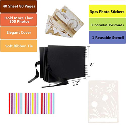 PRODUKTDETAILS – Album größe 31 x 21.5cm(12.2 x 8.5in), inneres papier 28 x 20 cm (11 x 7.9in), kommen mit 40 blatt / 80 seiten aus schwarzem fotopapier, Das paket beinhaltet 1 fotoalben , 3 postkarten, 1 schablone, und 3 seiten fotoecken