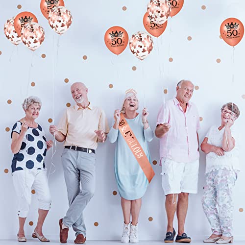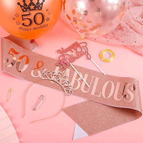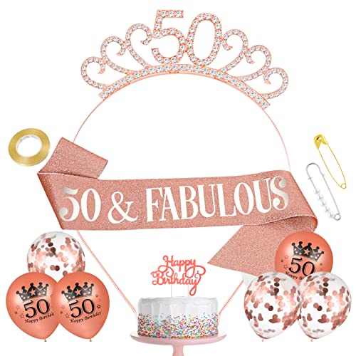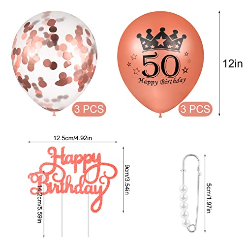 50. geburtstag schärpe und krone, mit geburtstag cake topper konfetti luftballons für 50.geburtstag frauen deko.