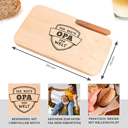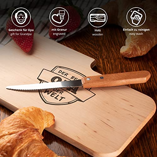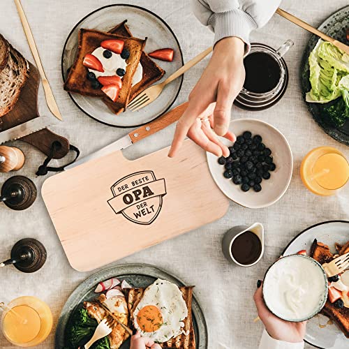 ❤️👴 INDIVIDUELLES GESCHENK FÜR OPA: Das Brotzeitbrett mit Messer verfügt über eine sorgfältige „Der beste Opa der Welt“ Lasergravur und wird daher zum absoluten Hingucker! Ein praktisches Brettchen für ein sauberes Schnittergebnis.