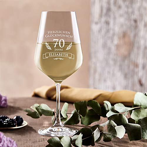 Details: AMAVEL Weißweinglas, Weinglas mit Gravur zum 70. Geburtstag, Personalisiert mit Namen, Herzlichen Glückwunsch