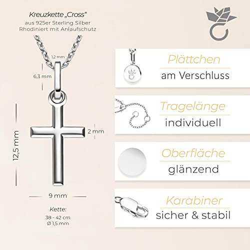 Die zeitlos klassische und elegante Kreuz Kette besteht aus echtem Sterling Silber 925. Mit ihrem zeitlosen Design ist sie ein perfektes Geschenk zur Erstkommunion als Kommunion Kreuz oder Kommunion Kette, Geschenk zur Konfirmation, Firmungs Geschenk als christlicher Schmuck oder einfach eine schöne Modeschmuck-Kreuzkette für jeden Tag.
