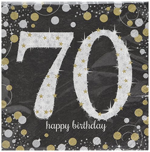 Details: Amscan 511964 – Servietten 70. Geburtstag, 16 Stück, 33 x 33 cm, Happy Birthday, Sparkling Celebration