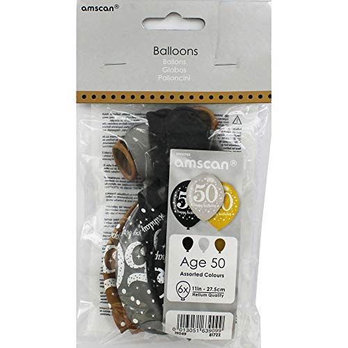 Details: Amscan 9900740 – Latexballons 50 Happy Birthday, 6 Stück, Luftballons, Geburtstag, Dekoration