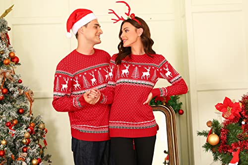 Design:klassisches Punkt-/Schneeflocken-Muster, Lang Strickpulli mit Rentiermuster Weihnachtspullover Rundhals Winterpulli Christmas Sweater