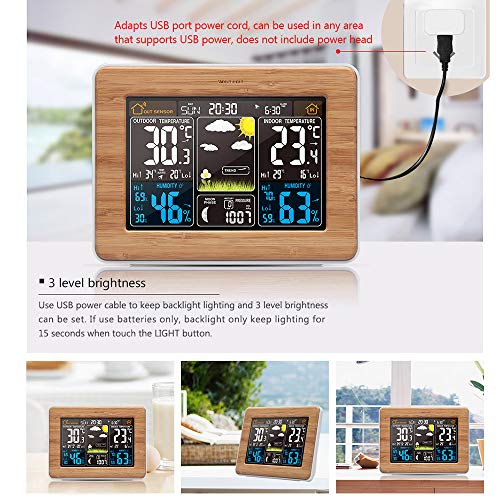 Ein Bildschirm, um die gewünschte Wetterdynamik zu erfassen: 7 Wettervorhersagen (sonnig, bewölkt, bewölkt, leichter Regen, starker Regen, leichter Schnee, starker Schnee) und Wettertrendanzeige Anzeige hoher/niedriger Luftfeuchtigkeit, Anzeige mehrerer Wetterindexe, Pflege des Wetters bedeutet, sich um die Gesundheit Ihrer Familie zu kümmern