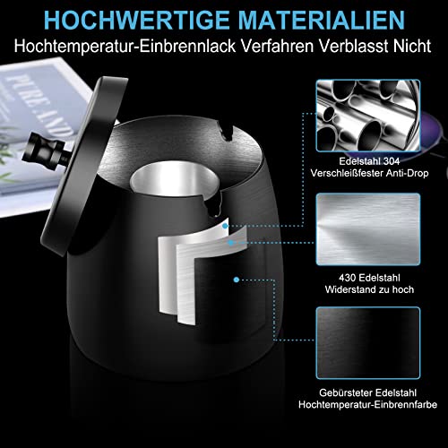 【Hochwertiger-Material】-Der Windaschenbecher für draußen ist aus hochwertigem Edelstahl mit guter Oxidations- und Rostbeständigkeit, Hitzebeständig, Wasserdicht und es würde nach dem langfristigen Gebrauch ein helles Aussehen behalten.