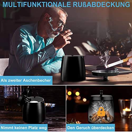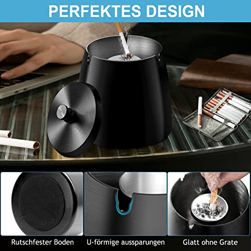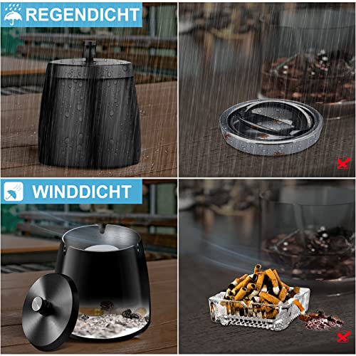 【Winddicht und Regendicht】Windaschenbecher schwarz kommt mit dichtem Deckel und rutschfester Matte am Boden,Es kann Unannehmlichkeiten durch Regen und Wind bei der Verwendung im Freien effektiv vermeiden,Ein Deckel kann Wind und Regen vermeiden und eignet sich hervorragend für windige Gebiete.