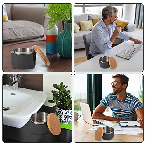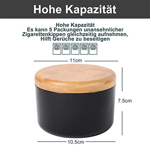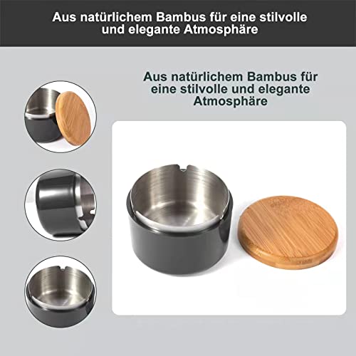 【Premium Material】Die Schale des Aschenbecher besteht aus PP-Material, das einen keramikähnlichen Glanz hat und zudem sturzfest und hitzebeständig ist. Das Innere besteht aus robustem und hochwertigem Edelstahl und die Abdeckung aus natürlichem Bambus für eine stilvolle und elegante Atmosphäre.