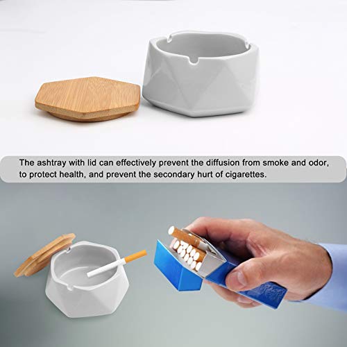 Ceramic Ashtray Nordic Style Ashtray with Lid, Windproof Ashtray for Outdoor Home Office Bar Cafe Decoration (White)