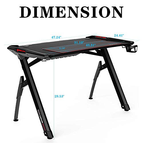 Y-FÖRMIGE RAHMENKONSTRUKTION: Die Y-förmigen Rahmenbeine bestehen aus sechseckigem Stahl, und das wasserdichte MDF-Laminatbrett gewährleistet die Stabilität aller Spielgeräte und die Langlebigkeit Ihres Schreibtisches und kann sogar ein Gewicht von bis zu 100 kg tragen. Vier Nivellierfüße mit verstellbaren Beinpolstern sorgen dafür, dass der Tisch auch auf unebenem Boden stabil bleibt, ohne zu wackeln.