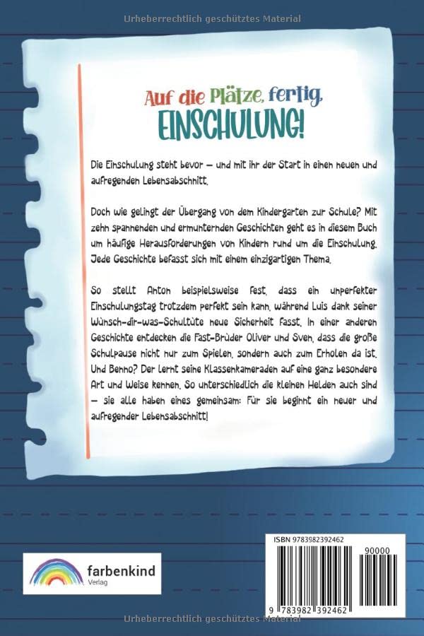 Details: Auf die Plätze, fertig, Einschulung! Pädagogisch wertvolle Geschichten für Jungs: Das besondere Buch zum Schulanfang…