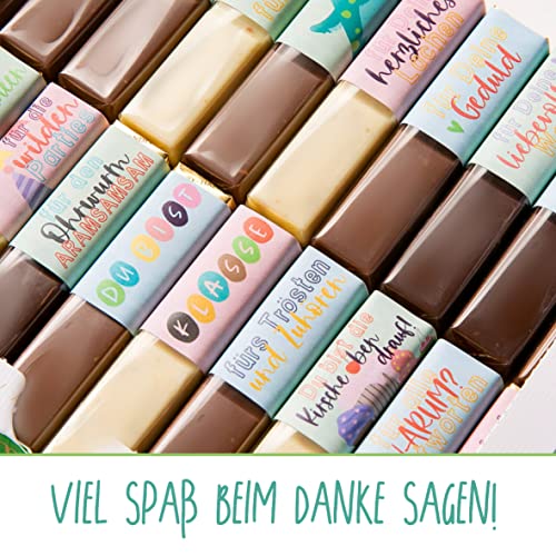 Selbstklebende Aufkleber für bis zu 21 Schokoladenriegel mit kreativen Sprüchen. Ein tolles Geschenk zum Abschied der Erzieher, Erzieherin, Kinderpflegerin, Tagesmutter oder Kita