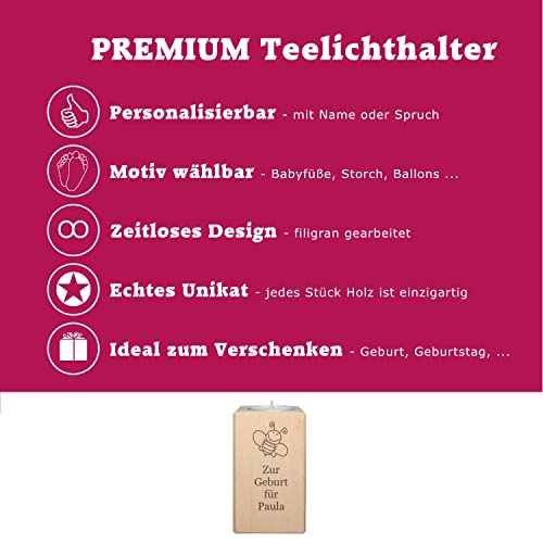 Details: Baby Geschenk zur Geburt – Teelichthalter aus Holz personalisiert mit Name und Motiv – für Jungen und Mädchen, mit…