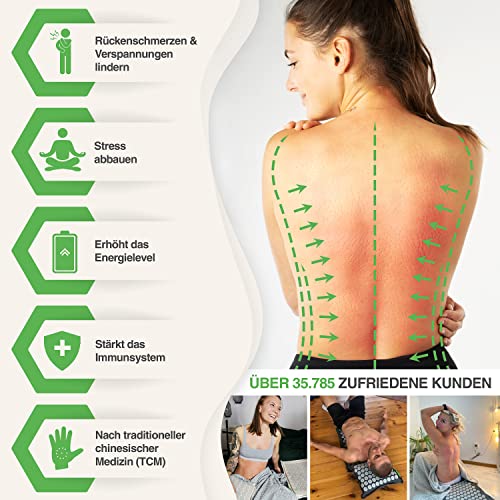 🌱 SCHMERZLINDERND: Die regelmäßige Anwendung von nur 15 Minuten auf der Akupunkturmatte kann Kopfschmerzen, Rückenschmerzen, Nackenschmerzen und mehr lindern!