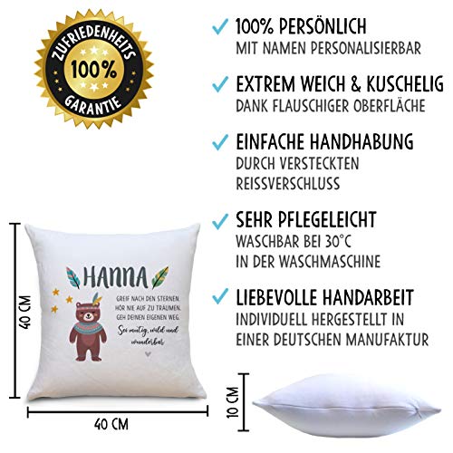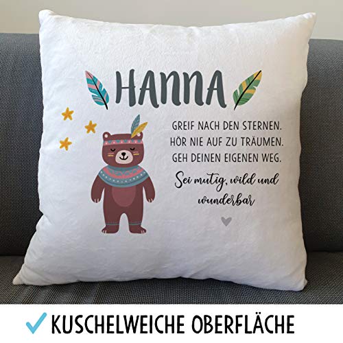OWLBOOK Bär Boho Flauschiges Kissen mit Füllung Personalisiert mit Namen Geschenke Geschenkideen zur Geburt Baby Kind…