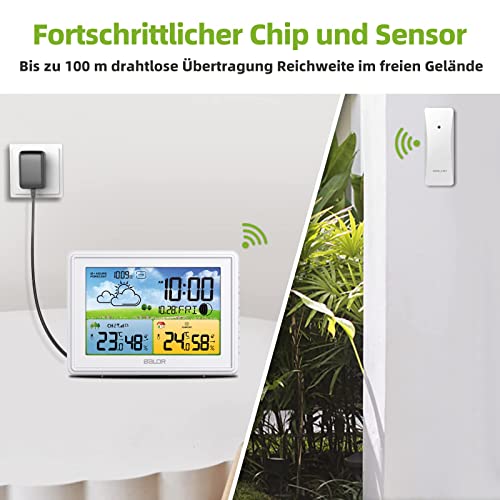 🌞Aktualisiert Technik: Die Wetterstation kann 3 verschiedene Standortdaten empfangen, Innen- und Außentemperatur und Luftfeuchtigkeitswerte aufzeichnen. Die Übertragungsreichweite beträgt bis zu 100 Meter im freien Gelände. Platzieren Sie den Außensensor 2-2,5 Meter über dem Boden, um genauere Daten zu erhalten.