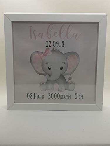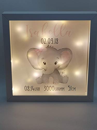 Details: Beleuchteter Bilderrahmen personalisiert Leuchtrahmen Elefant Geschenk zur Geburt oder Taufe mit Namen Datum Mädchen…